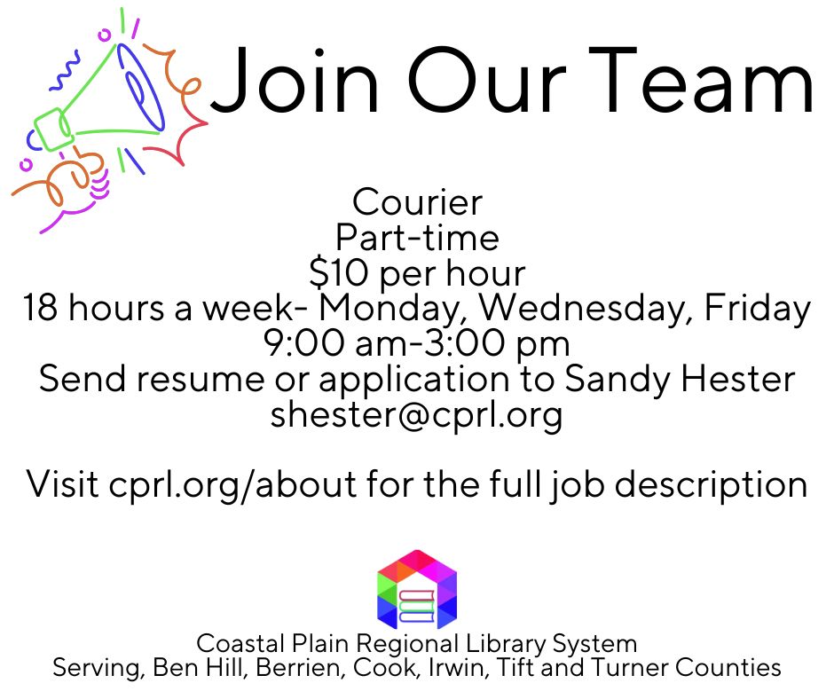 Join our team! We are seeking a dependable, self-motivated and organized individual who will provide a critical connection between our member libraries. Click here to view the full job description and application!