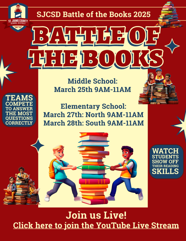 Visitors to campus MUST complete a School Access Form which can be found on the SJCSD website at https://www.stjohns.k12.fl.us/volunteer/.