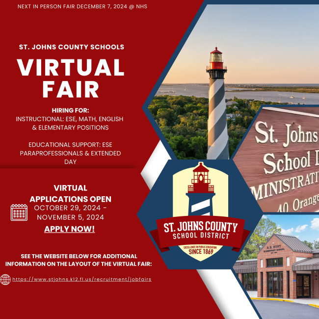 Visitors to campus MUST complete a School Access Form which can be found on the SJCSD website at https://www.stjohns.k12.fl.us/volunteer/.