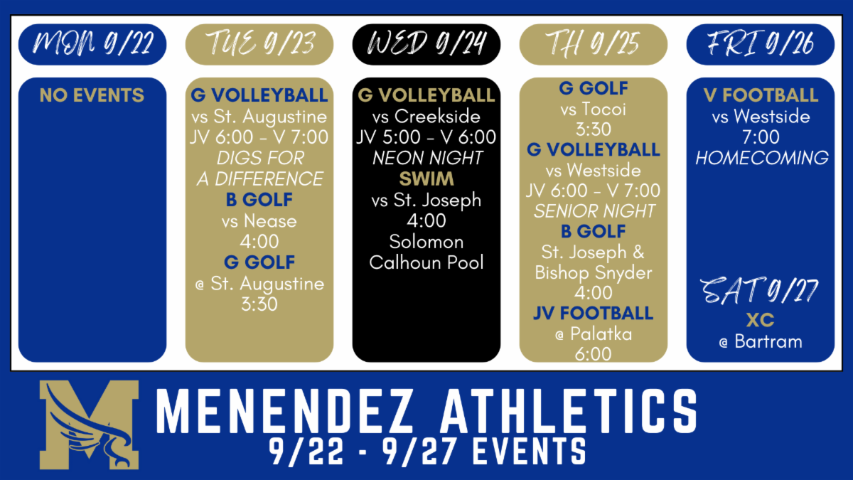 Members of the Menendez Community has recently formed The Pedro Menendez High School PTSO! The PTSO (parent, teacher, and student organization (PTSO) is a wonderful way to get involved , support our school, and help build a stronger community. We will have a table set up at the Homecoming game this Friday night- stop by to learn more and sign up to join. You can also join us through our Facebook and Instagram pages launching this week!