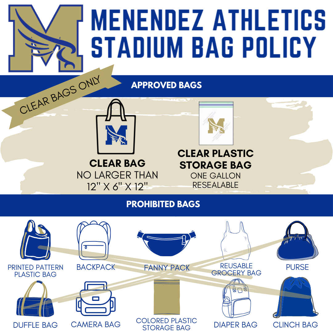 · ONLY CLEAR BAGS WILL BE PERMITTED INSIDE THE STADIUM.