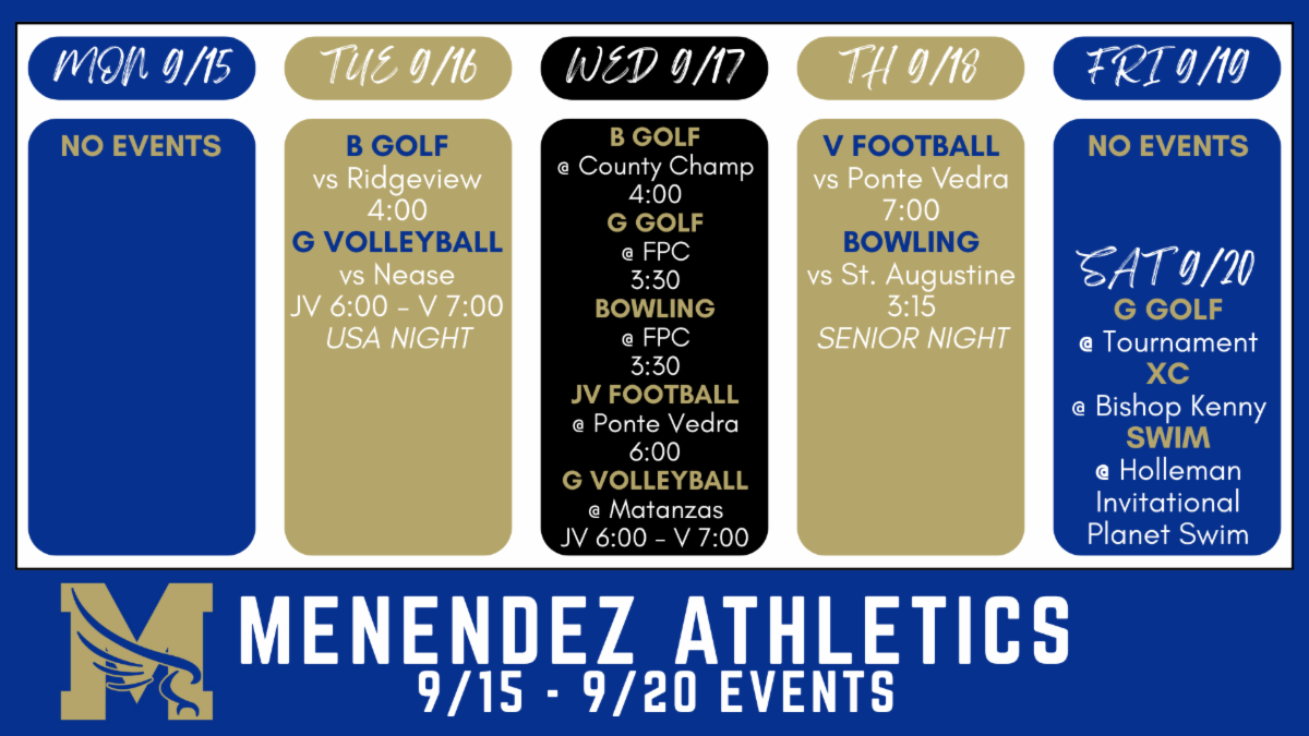 The Menendez Athletic Department utilizes an online paperless registration system, AthleticClearance.com. The registration process is attached. Additional Menendez Athletics information, including coaches’ contact information, can be found at www-pmhs.stjohns.k12.fl.us/athletics/. Our expectation is that every athlete will be registered by their parent/guardian before their desired sport’s start date.