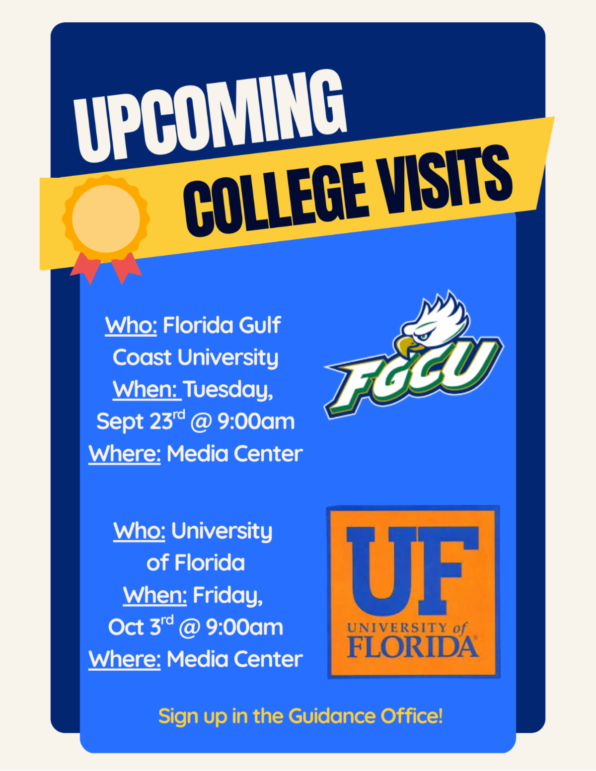 As a reminder, the state of Florida has given every student free access to the Xello college and career planning website. We will be utilizing this tool to aid in applying to colleges (used alongside CommonApp) as well as researching careers, scholarships, etc. Parents and guardians were sent instructions on accessing their free accounts two weeks ago, let your student's School Counselor know if you did not receive yours or if you need help in accessing your account.