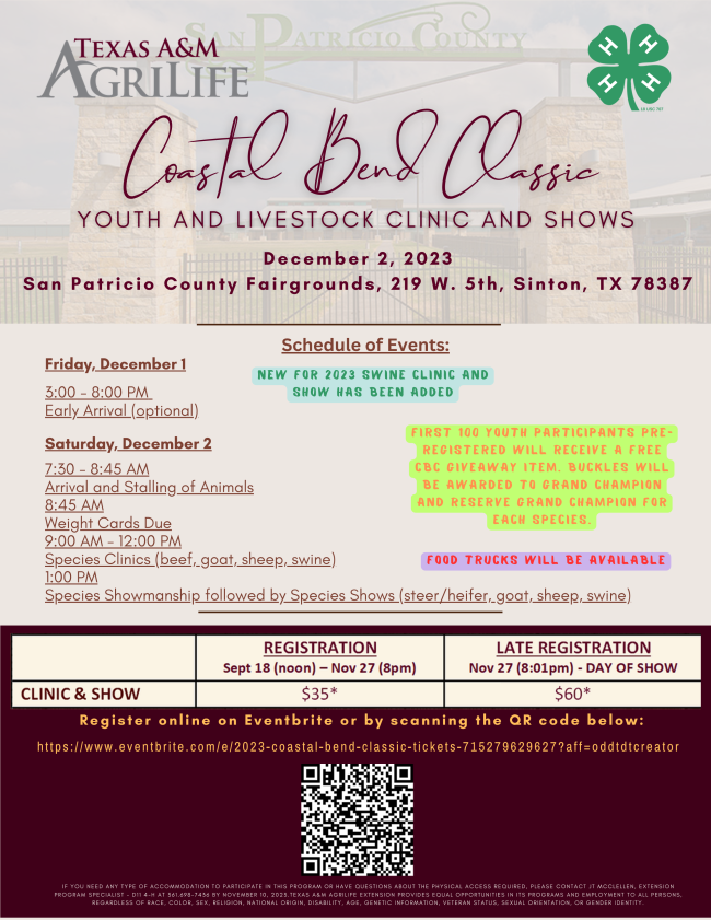 Texas A&M AgriLife Extension provides equal opportunities in its programs and employment to all persons, regardless of race, color, sex, religion, national origin, disability, age, genetic information, veteran status, sexual orientation, or gender identity. Individuals with disabilities who require an auxiliary aid, service, or accommodation in order to participate in meetings are encouraged to contact the Texas A&M AgriLife Extension Service office at 830-620-3440 five days prior to the event so that appropriate arrangements can be made. The Texas A&M University System, U.S. Department of Agriculture, and the County Commissioners Courts of Texas Cooperating