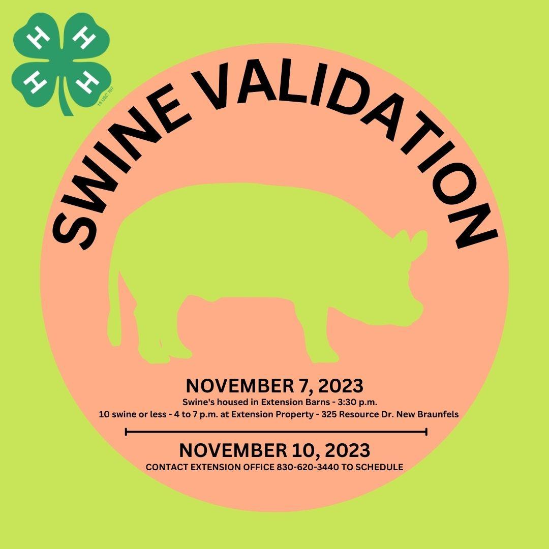 10 swine or less - 4 to 7 p.m. at Extension Property - 325 Resource Dr. New Braunfels