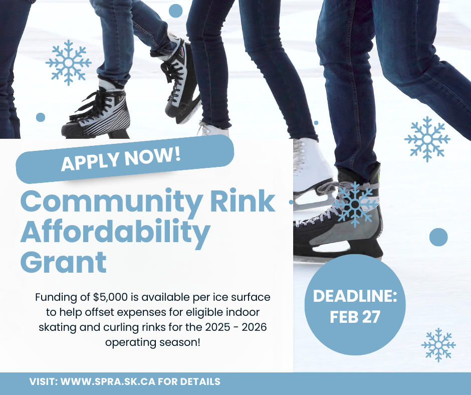 The Community Rink Affordability Grant from SPRA is now open. Funding of up to $5,000 per ice surface is available to help eligible indoor skating and curling rinks offset operating expenses for the 2025–2026 season.