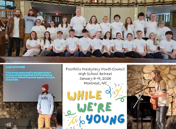 | | Joyful Celebrations around Foothills Presbytery | | (above) Smaller Church gatherings in September & March. | | (below) Foothills Women's Spiritual Retreat in March. | | (below) PYC High School Retreat | | | | |