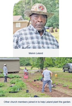 Melvin Leland, wearing a red-and-striped shirt, jeans, and a U.S. Marine Corps hat, sprayed himself with OFF to keep the mosquitoes at bay on this warm Thursday morning in May. Before him and his helper, Chris Anderson, stood rows of cucumber, tomato, squash, and watermelon plants in black plastic containers that they had unloaded from a trailer behind Bethesda Presbyterian Church in Gaffney. They needed to plant them in ground softened by an overnight rain, which still carried the familiar, earthy smell that comes when water hits dry soil.