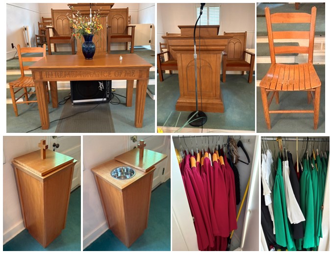- Choir Robes: 11 green and 13 burgundy