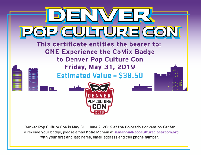 (PCC), which hosts Denver Pop Culture Con (f.k.a Denver Comic-Con) in downtown Denver from May 31 - June 2, 2019, has a wealth of literacy activities and resources for free for educators. From comics, gaming, and cosplay workshops to attending