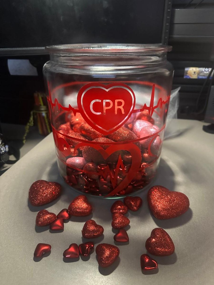 To recognize these moments, we’ve created a tradition: for every successful CPR coaching, a heart goes in the jar. When the jar is full, we celebrate with something fun — like a Pajama Day or a pizza party. It’s a small way to honor big, life-saving work.