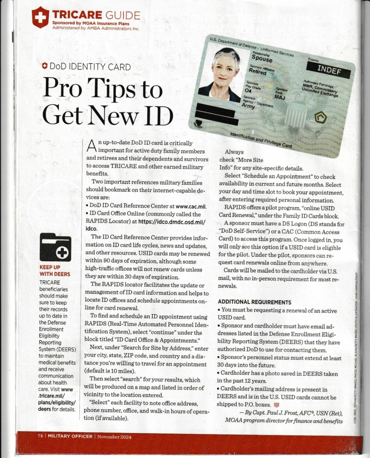 Karen Ruedisueli, director of government relations for health affairs for the Military Officers Association of America (MOAA), shared some of the following advice for navigating 2025’s Tricare changes, including the possibility of “a large number of people being disenrolled as of Jan. 1” if they don’t provide their payment information to a new contractor.