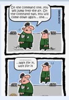 A LT walked up to a SGT jumping up and down on top of a manhole saying the number 3 after every jump. The LT yelled What are you doing SGT? Nothing Sir just seeing how high I can jump while on this manhole. The LT shook his head and said Well that's not high at all. Get out the way and let me show you how to do it. The SGT moved and the LT jumped real high in the air. As he did the SGT removed the manhole cover and the LT fell down into it. He then replaced the cover and started jumping again saying 4, 4, 4. | |