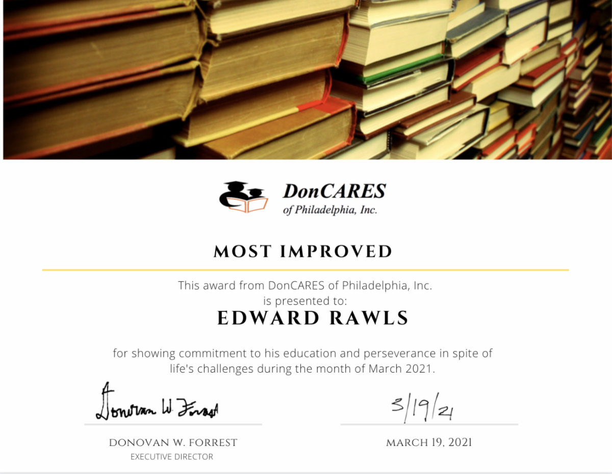 On Saturday, March 20, 2021, DonCARES of Philadelphia, Inc. and several other organizations from Temple University collaborated on a street clean-up at The U School. Among the collaborating organizations were The Progressive NAACP, The Temple Owlettes, The National Council of Negro Women, Temple Section, Temple University's chapter of the Black Law Students Association Pre-Law Division, and Temple Student Government.