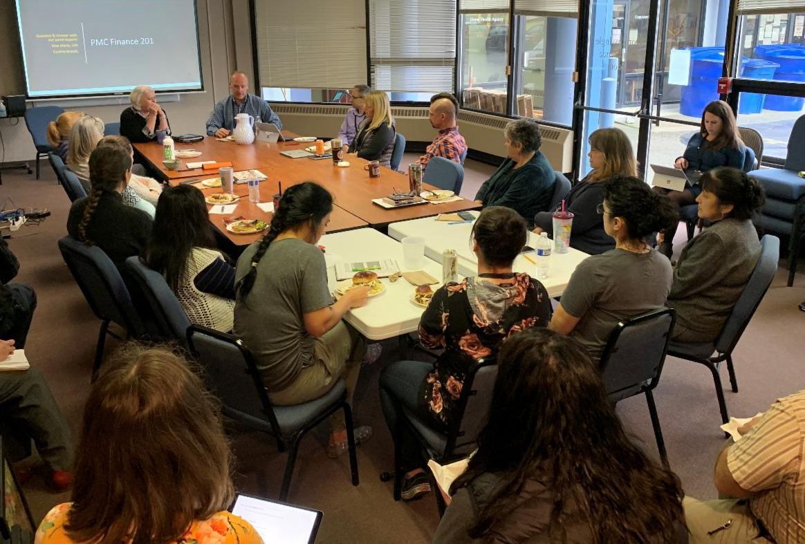 ▲ Managers gathered for PMC's November boot camp. Max Mertz, CPA, and Cynthia Brandt, financial consultant, gave a presentation and answered staff questions.