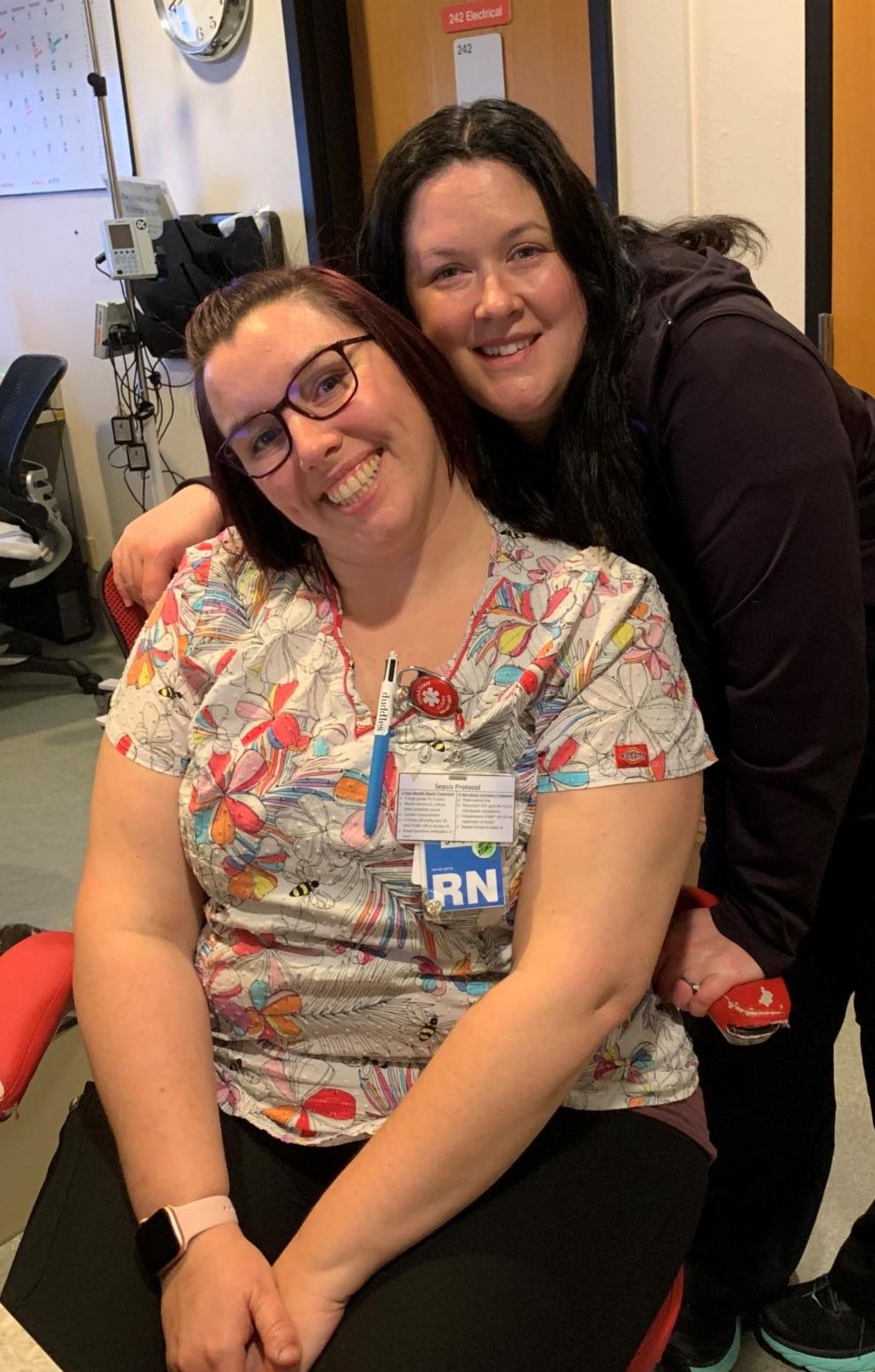 ▲ March of Dimes Nurse of the Year, Alaska, finalist Angela Menish (standing) with fellow PMC registered nurse Joyln Duddles.