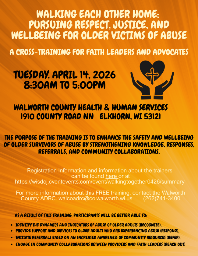 WALKING EACH OTHER HOME: PURSUING RESPECT, JUSTICE, & WELLBEING FOR OLDER VICTIMS CROSS-TRAINING FOR FAITH LEADERS & ADVOCATES