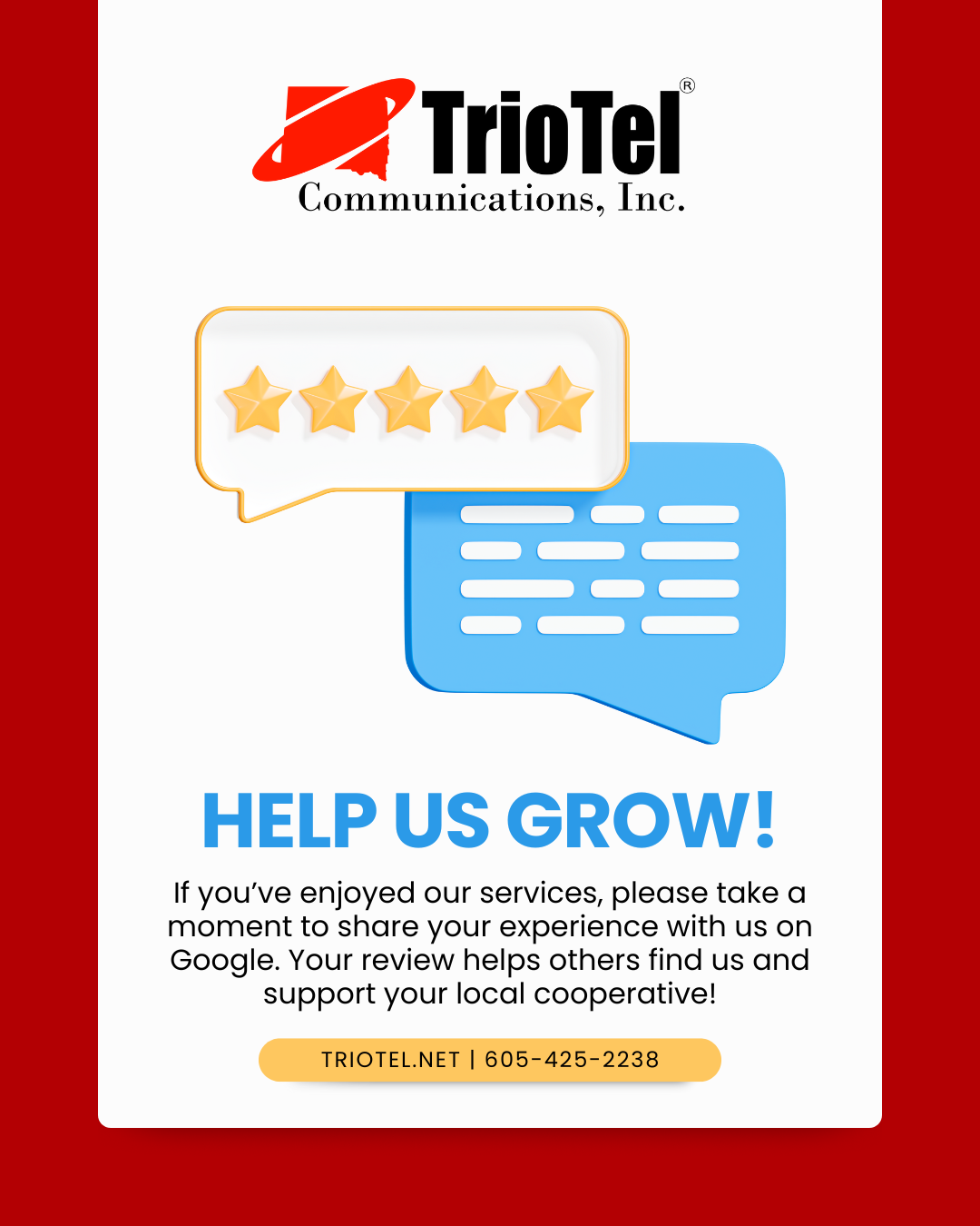 TrioTel will be hosting Bingo for all ages on December 5th in the McCook Central PAC room. This free-will donation event will send proceeds to benefit local families on the Christmas Angel Trees in our service areas. Doors will open at 4PM for those that want to join. We will start the first game of BINGO at 4:30pm and will play until 6:00pm OR until all of the prizes are gone.