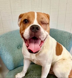 Rayne is an American Bulldog who is approximately 10-12 months old. She was found as a stray with an issue with her eye. It was best to remove the eye, but that does not stop her at all from being a normal happy healthy dog. She does well with everyone! She loves other dogs, children and cats! She is the perfect fit for any family. Rayne would love a home where she can go and explore and meet new people but also crash on the couch where she can relax. Rayne is an exceptional dog who has a lot of love to give!
