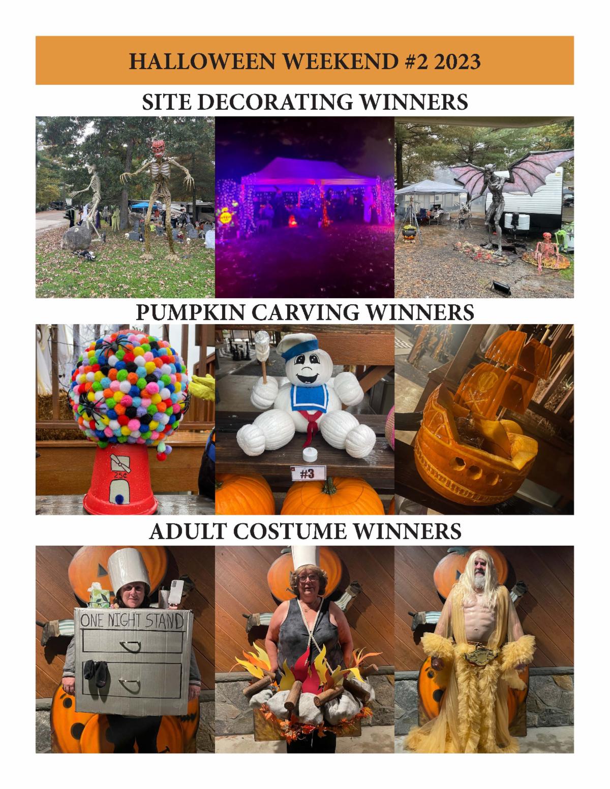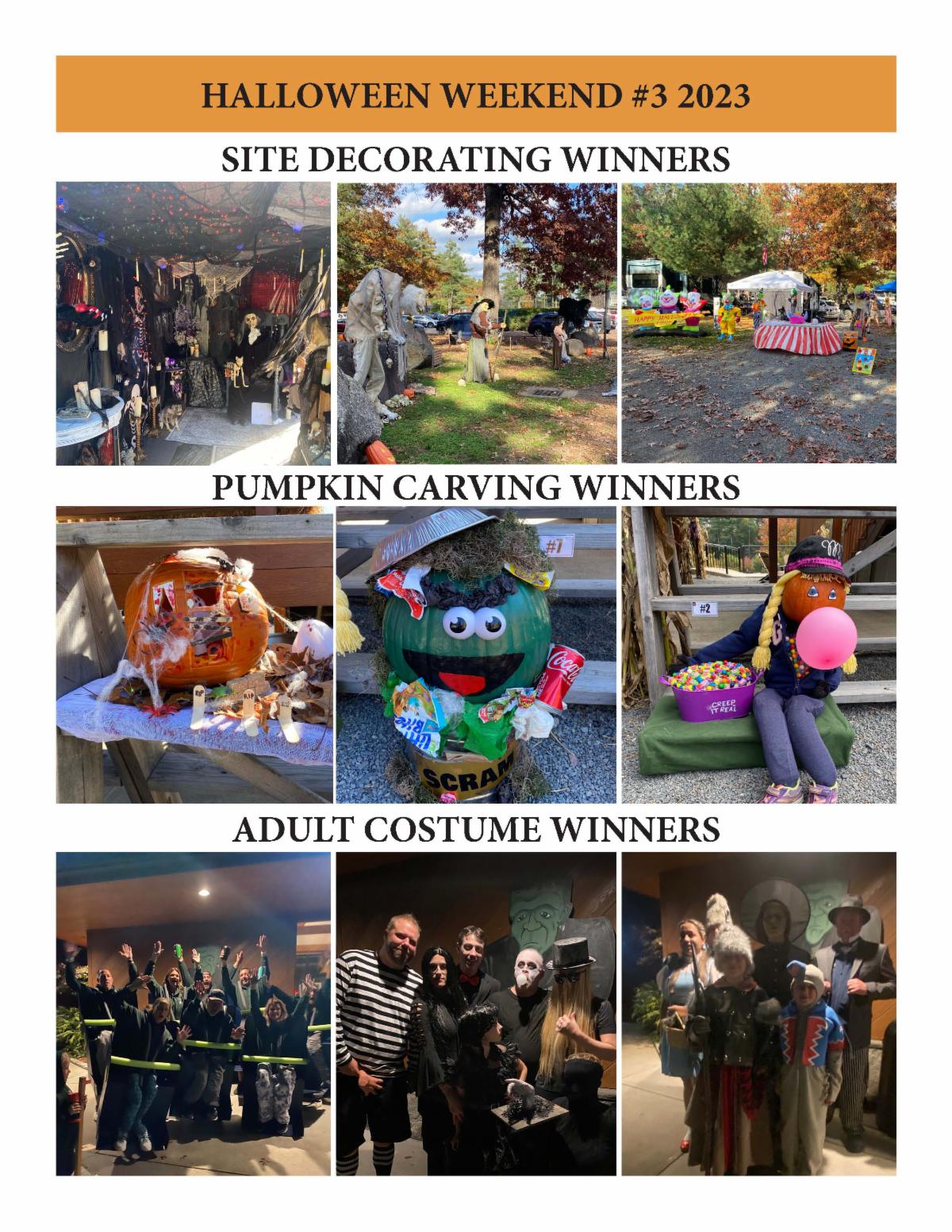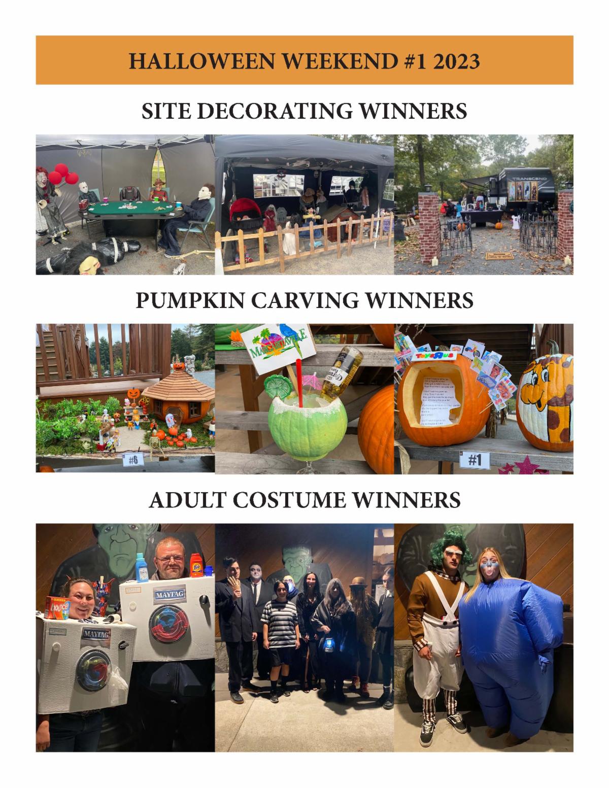 Everyone had a frightfully good time over our Halloween Weekends! The campsites were creatively decorated, the pumpkins were carved with spirit and our guests were dressed in their best Halloween costumes!