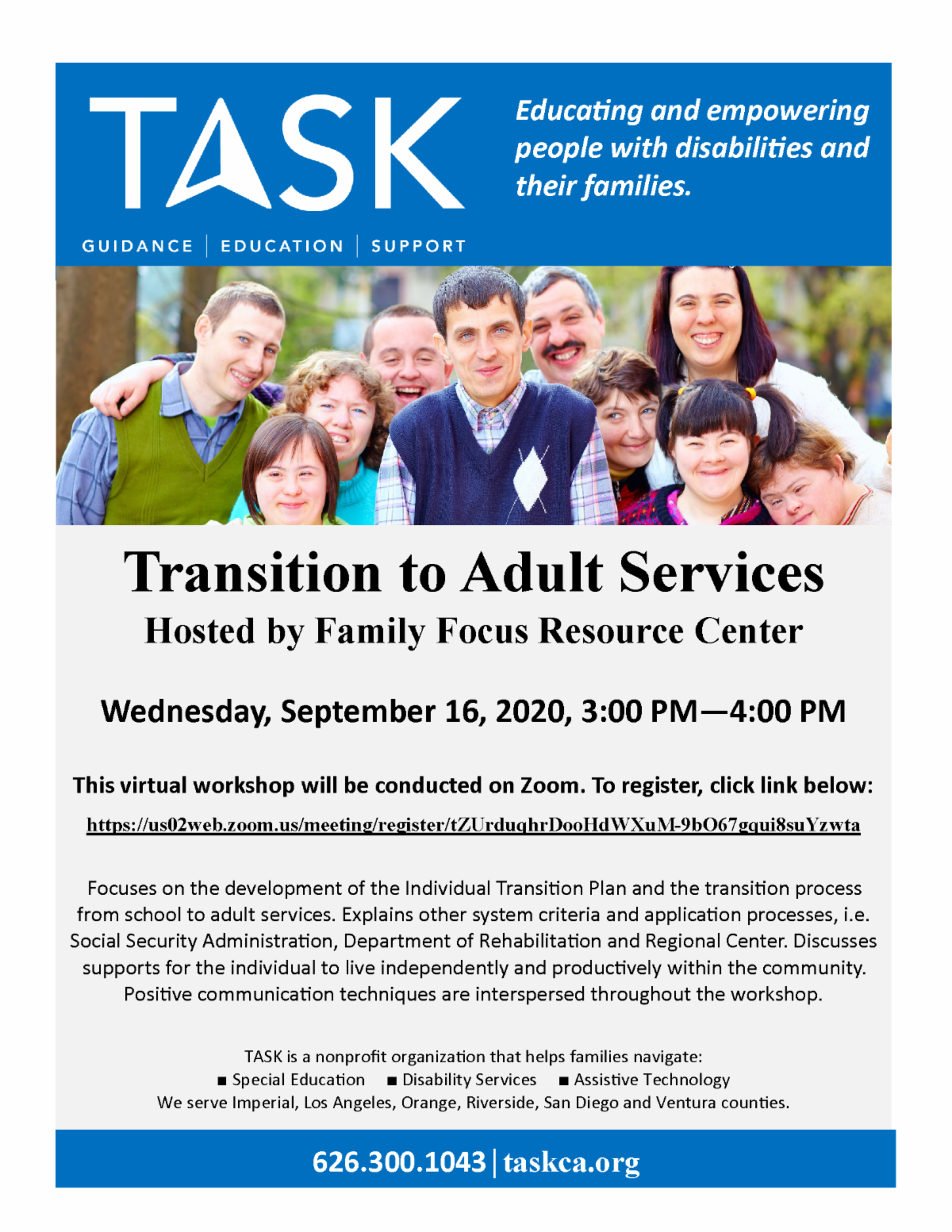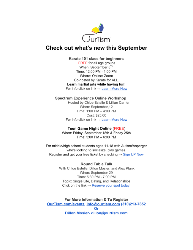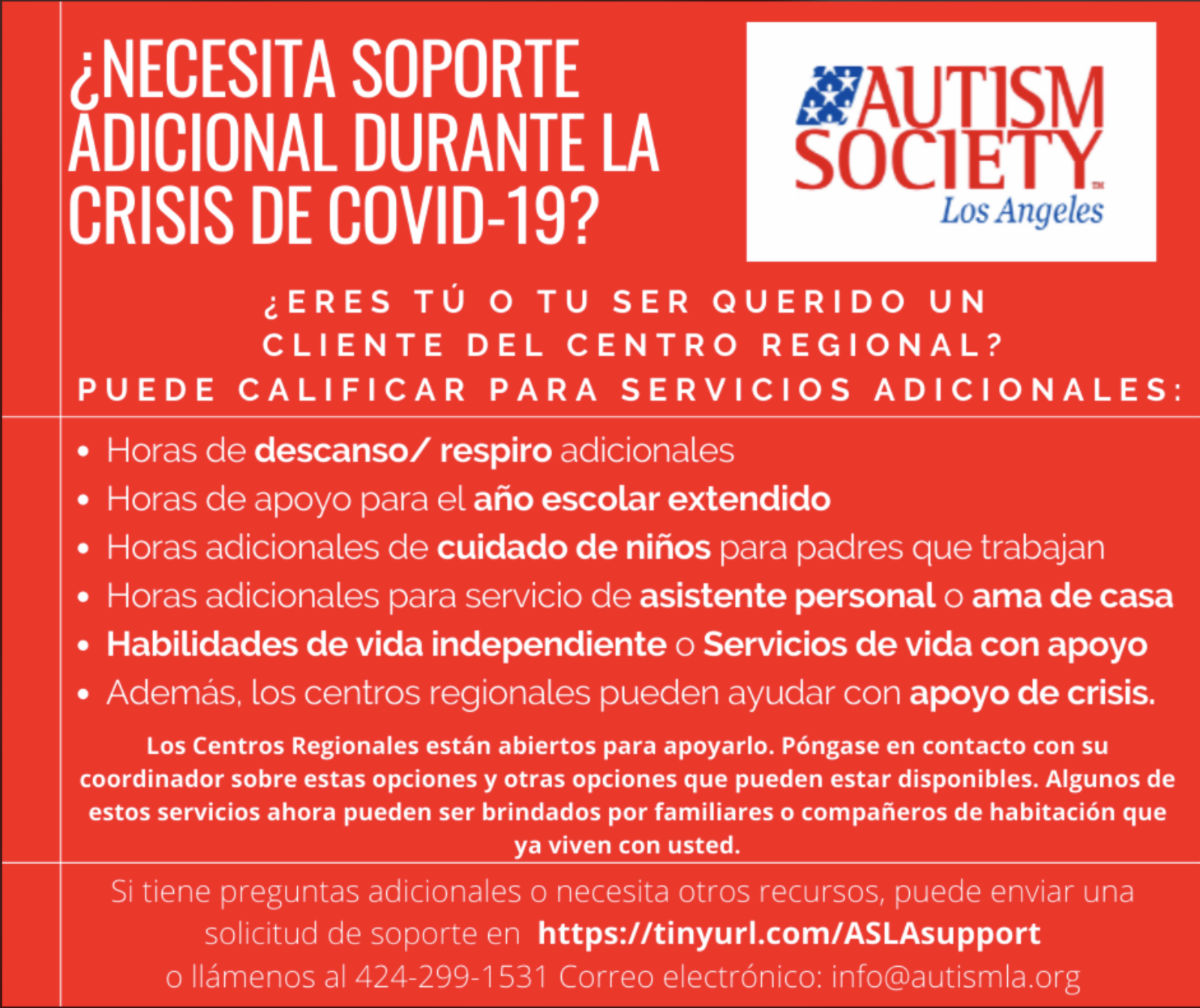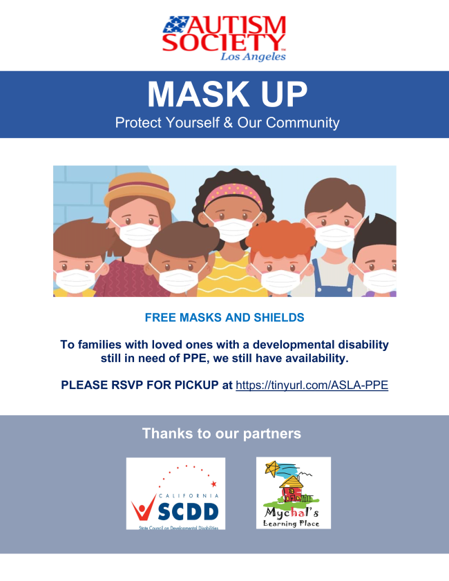 We have community events listed below but continue to provide content on our facebook page at AutismLA on community webinars, IEP navigation during distance learning, food banks, diaper drives, backpack and rental supports in response to priorities of our community during the Pandemic.