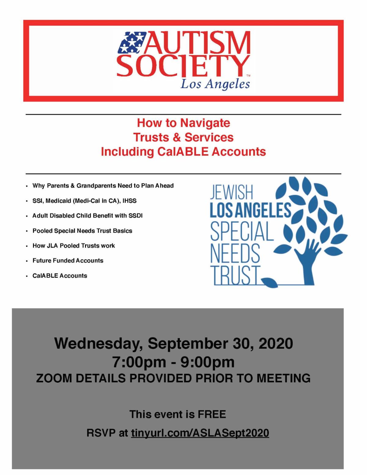 Autism Society of Los Angeles and Jewish Los Angeles Special Needs Trust are partnering to provide a informational webinar. We always learn new information from Michelle Wolf!