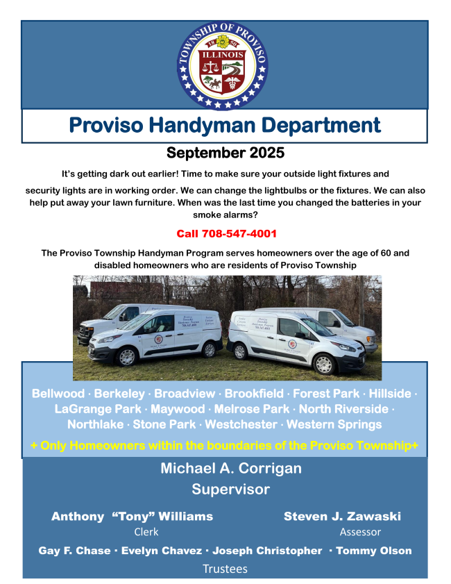 Proviso Handyman department is here to serve the needs of our senior residents over the age of 60 and /or disabled residents who are homeowners in our community.