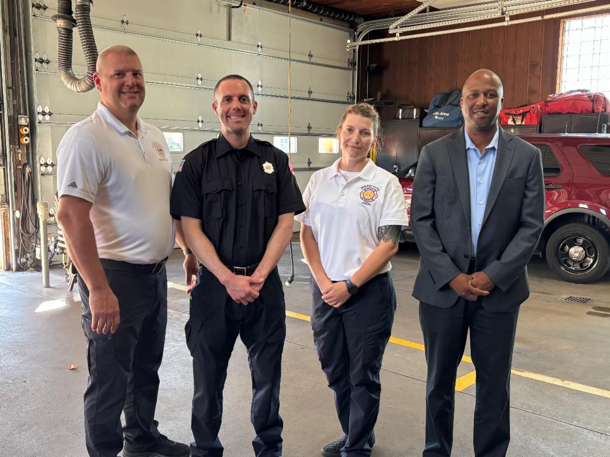 Pictured below are Deputy Fire Chief Maylath, Douglas Krakau, Fire Chief Hankus, and Mayor Hoskins.