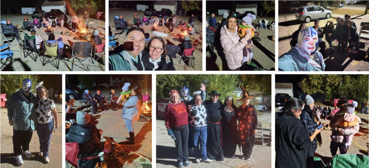 | | DIA DE MUERTOS AT PARROQUIA SAN JOSÉ | | BONFIRE WITH PARROQUIA SAN JOSÉ & ST. PAUL LUTHERAN CHURCH | | Recently, Parroquia San José and St. Paul Lutheran Church (the host church for San José) organized a joint bonfire with games, costumes, tamales, chocolate, and pan de muerto (bread of the dead). A wonderful and fun night of fellowship! | | |