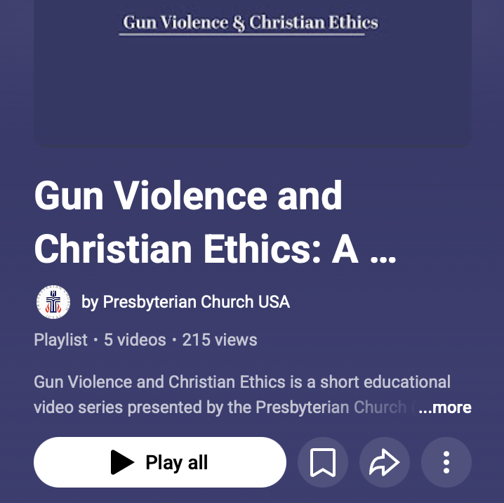 This new adult educational video series, presented by the Presbyterian Church (USA)’s Office of Public Witness, brings together leading Christian academics from around the United States to think about how Christians might think about the uniquely American problem of gun violence as people of faith. What might our faith might say about gun violence? How might it counter the cultures of fear, civil distrust, and alienation that make guns attractive? And how it might move us to engage in ministries of prophetic advocacy and tender reconciliation that help to end gun violence in the United States?