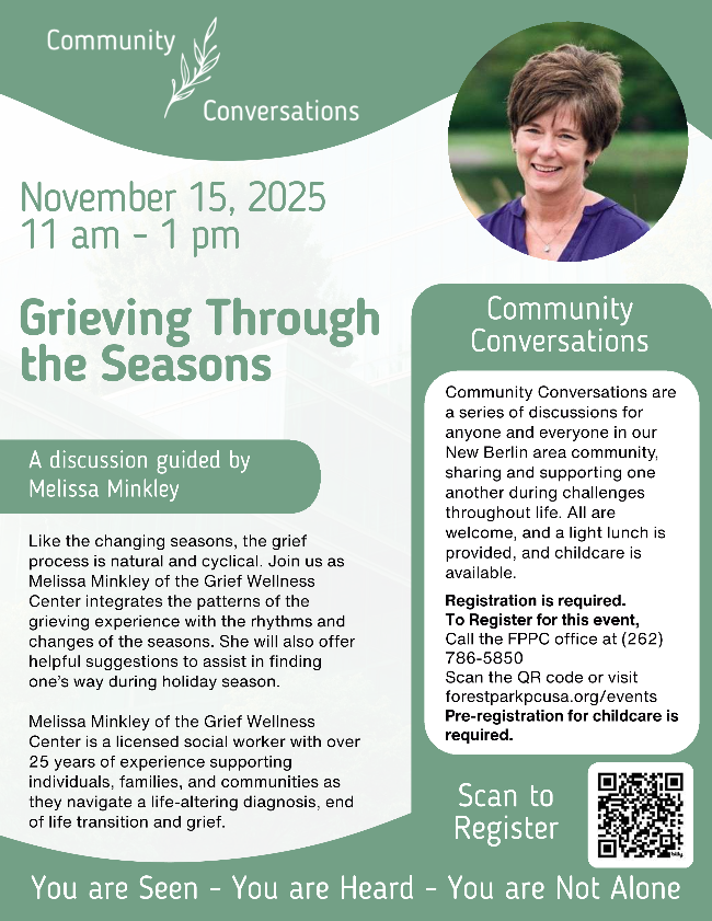Grieving Through the Seasons, a discussion guided by Melissa Minkley