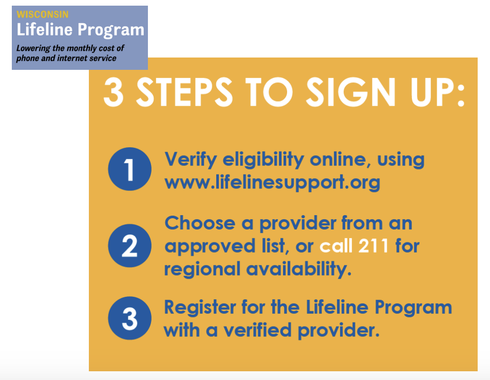 The Lifeline program provides qualified low-income Wisconsin residents with affordable access to essential telecommunications services by offering discounts on the cost of phone, cellular, and internet services.