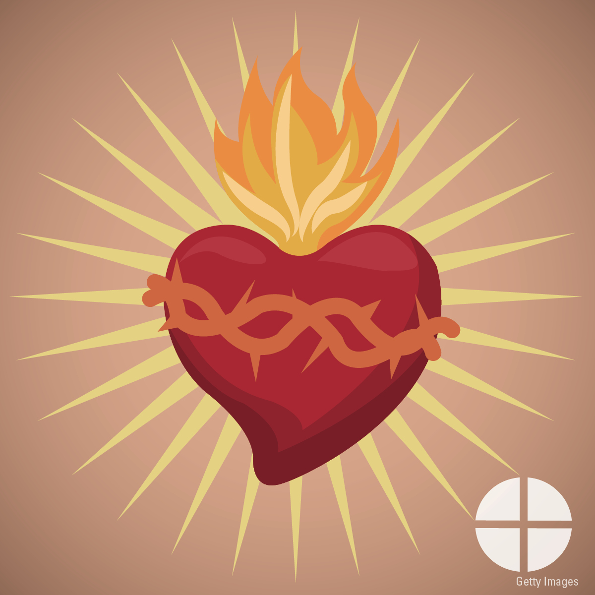 The human heart is a symbol for the life, love and well-being of an individual. The heart therefore as a symbol tries to capture God’s tremendous love for us, God’s constant care, and the security we find in resting against God’s heart in prayer. The Sacred Heart tells us “not that we love God, but that he loves us.”
