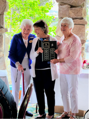 Barbie Butz (left) presents The Barbie Leadership Award to Marge Harris (center), with Bonnie Long.