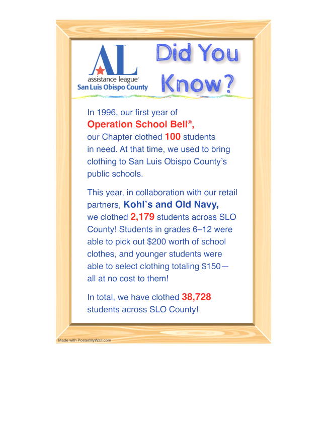 Even while our membership enjoys summer fun with their families, our San Luis Obispo Chapter is gearing up to ensure that Operation School Bell (OSB) has another record-breaking year of support for the County’s students in need.
