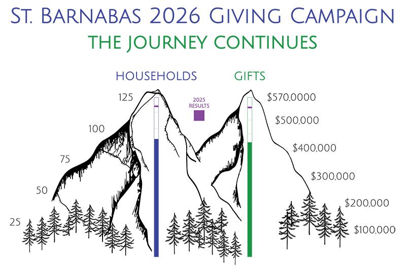 | The Higher We Climb, the Better the View! | 91 households have pledged so far to support Christ’s mission at St. Barnabas! We’re grateful for all who have pledged their monetary gifts. Please join us on our journey. It’s never too late to pledge or adjust your pledge, as needed or desired. | Stewardship Stories: Michael Fitzpatrick | | We are grateful for our Sunday storytellers who shared what St. Barnabas means to them. In the video below from October 19, Michael Fitzpatrick shares his philosophy on giving based on Jesus’s words in Matthew 10:8, “Freely you have received; freely give.” | |