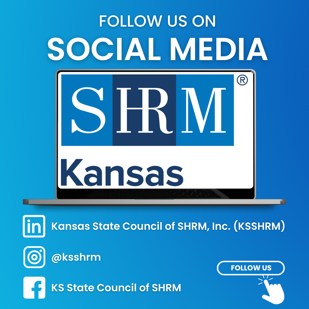 Stay in the know about everything KS SHRM. Connect with us on our social media platforms! Whether you want to know about KS SHRM activities and events, see what SHRM chapters around the state are up to, or learn about National SHRM initiatives - follow us on LinkedIn, Facebook, and Instagram to keep current.
