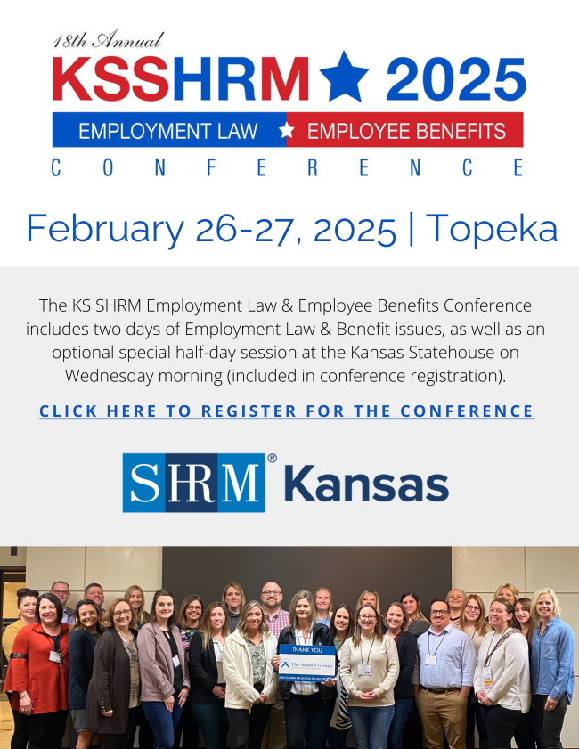 We will continue to keep Kansas SHRM members posted of the latest developments, or any action we are requesting from members, at both the state and federal levels as the year progresses.