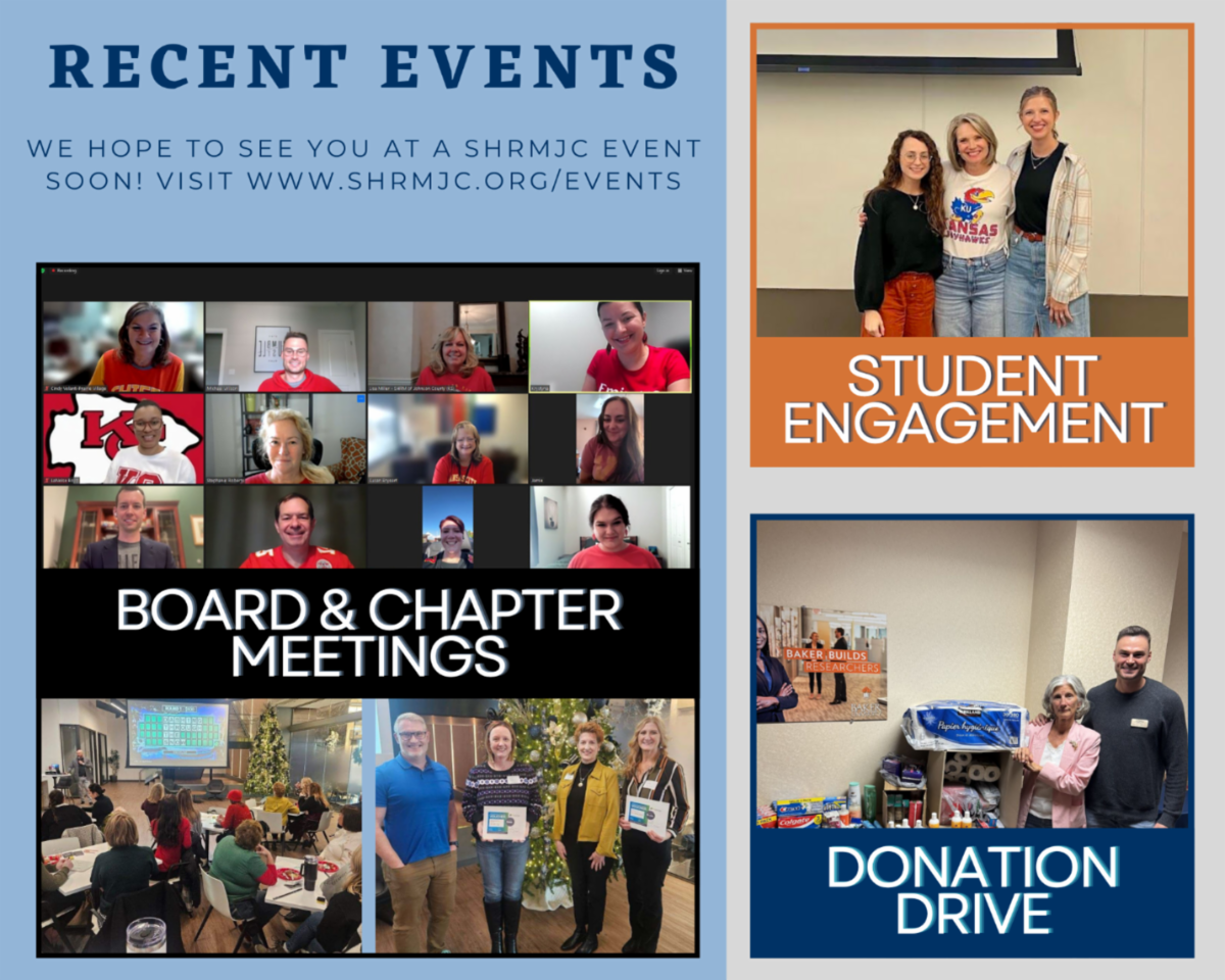 Do you live in or around Johnson County Kansas, and work or partner in Human Resources? Check us out! SHRMJC offers a variety of professional resources, networking, and certification opportunities. From monthly chapter programs featuring HR expert presentations (offering recertification credits), new member engagement opportunities, biz mixers, round tables, and more, SHRMJC offers a plethora of ways to connect, engage, and stay up to date with Human Resource topics and trends!