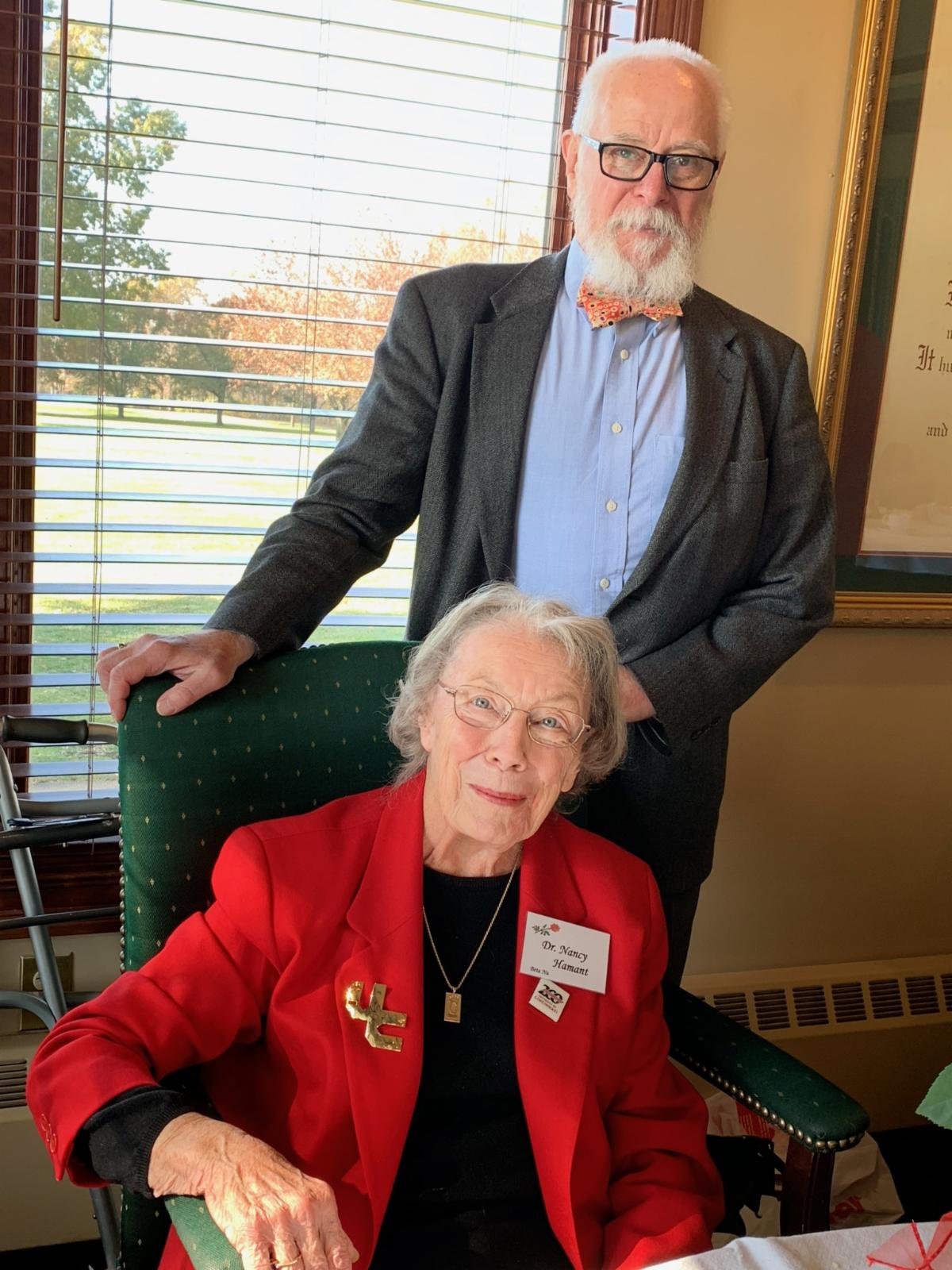 Dr. Nancy Hamant (inducted in 1965) is pictured with author Greg Hand who spoke at our Nov. meeting about the 200 anniversary of University of Cincinnati. Dr. Hamant is mentioned in a book about outstanding women educators at UC.
