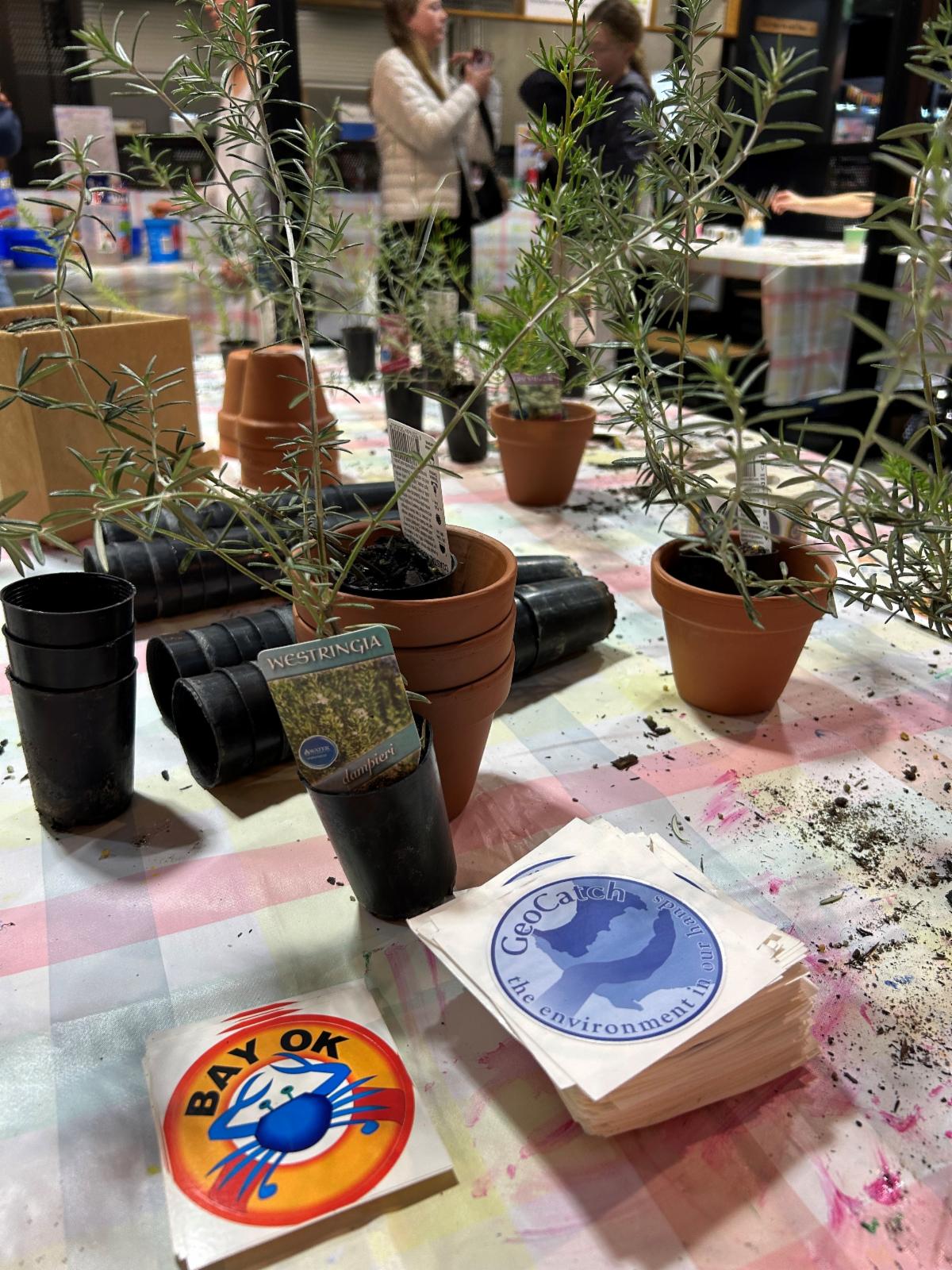 70 kids enthusiastically made up a Bay OK-recommended soil mix to pot a native plant into and then creatively decorated their pots.