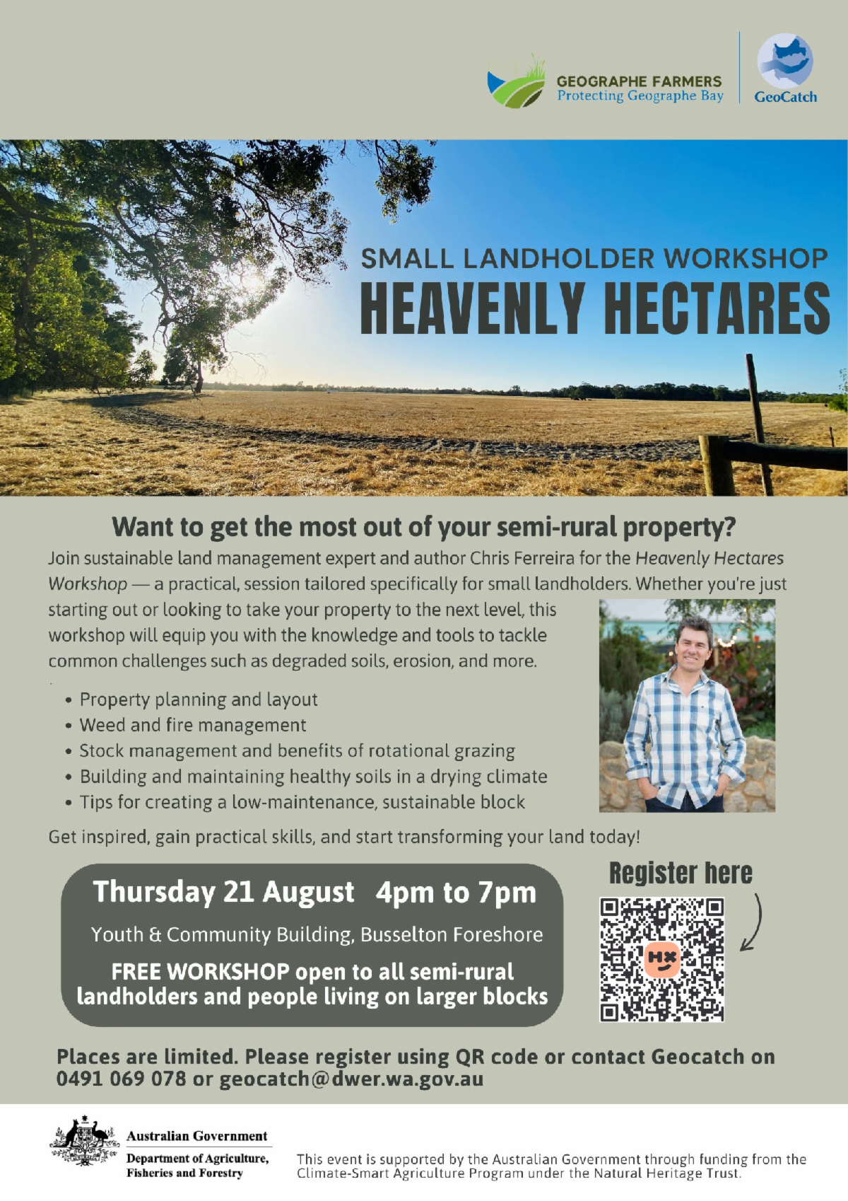 This support will help local Geographe farmers improve nutrient management on farms, fence livestock from waterways, and restore degraded riverbanks.