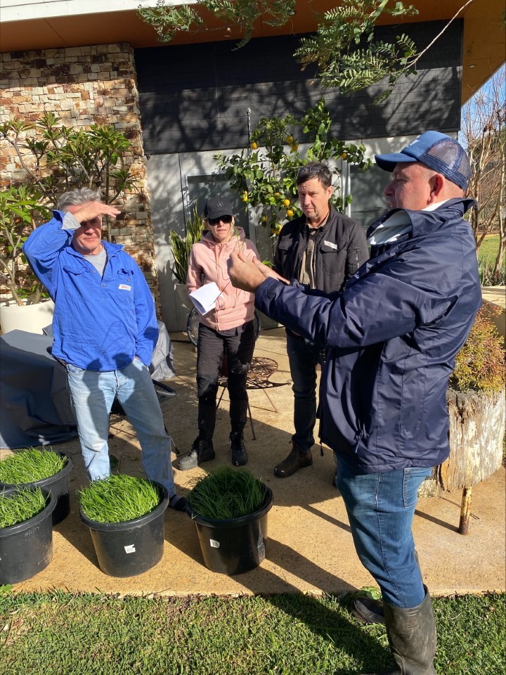 Image: Dan Parnell walks participants through his 'rotational grazing paddock simulation' and checks the pasture to see if it’s ready for grazing.