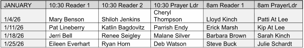 Our Annual Meeting will be held on Sunday, February 1, 2026 after our 9:00AM service. We are planning a potluck brunch so, bring your favorite dish to share. This is a very important meeting and we want everyone to attend. There will be a craft table for children and they will be having fun making crafts while parents will be having fun participating in the meeting. We will have an election for Vestry members and the bios for the people running for these seats will be in the newsletter. Please read about nominees for the Vestry. A choice of candidates suggests a parish with leadership strength and numerous individuals ready to take part.