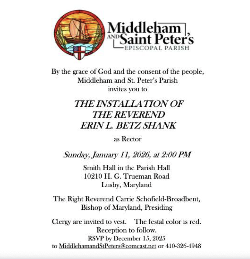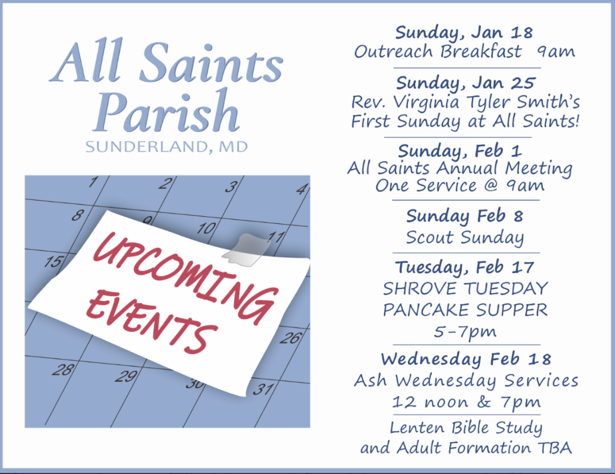 All Saints will host Safe Nights from February 8-15, 2026. Safe Nights helps protect Calvert County’s unhoused population from the cold by providing food and shelter in a clean and secure environment. To this end, we will need volunteers to set up the Parish Hall with cots, provide meals, serve as monitors, and help with clean-up. To sign up, please visit the link below. For more information, contact Fane Lineback or David Lippe.