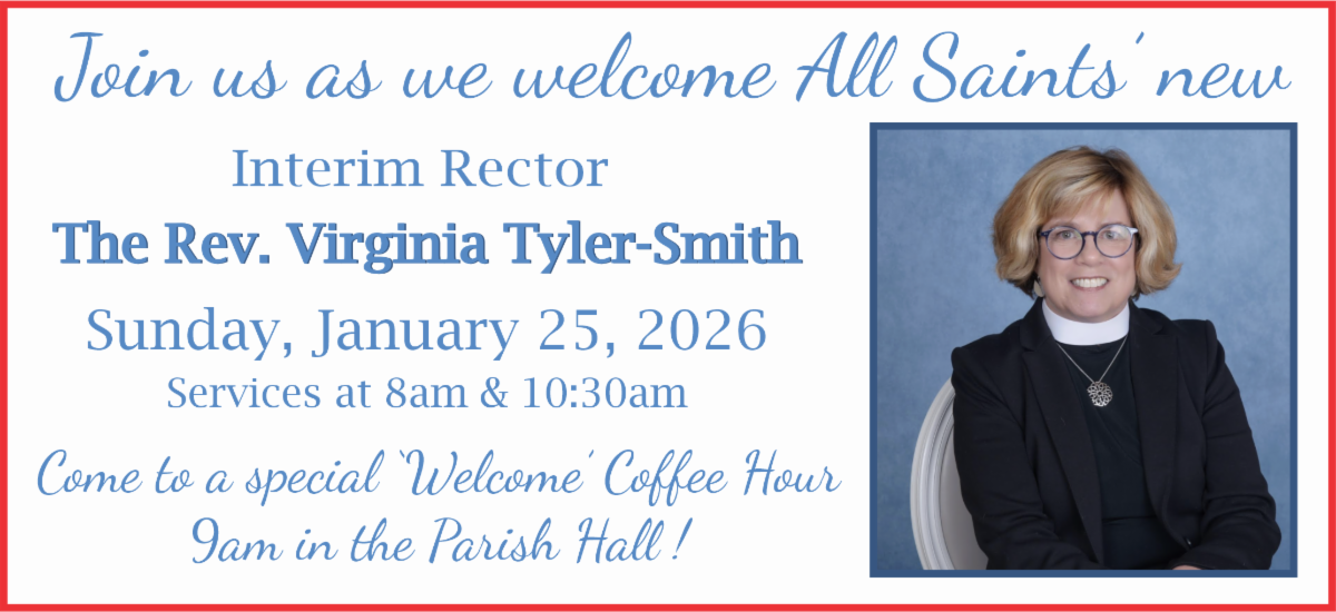 As Rev. Virginia starts at All Saints, she is curious whether people would like a weekly Bible study. Don’t worry-you will not need to be a Biblical scholar to participate, in fact you don’t even need to own a Bible! Please take this survey to share your thoughts about getting a Bible study started. Rev. Virginia will share the results of the survey after she starts on January 20, 2026. Link to the survey:
