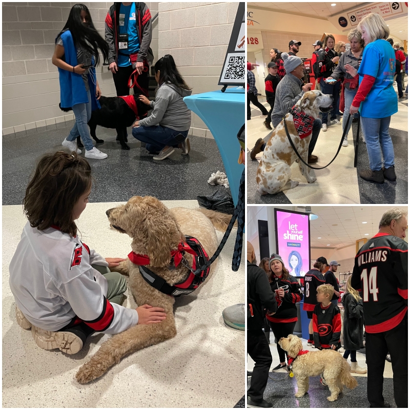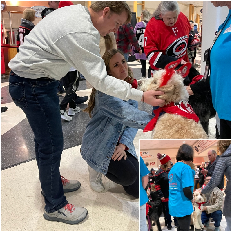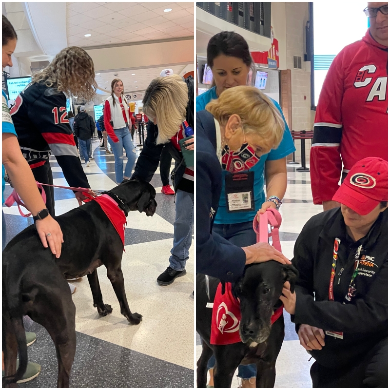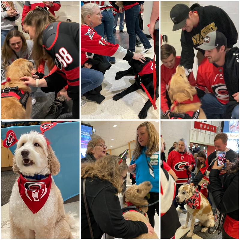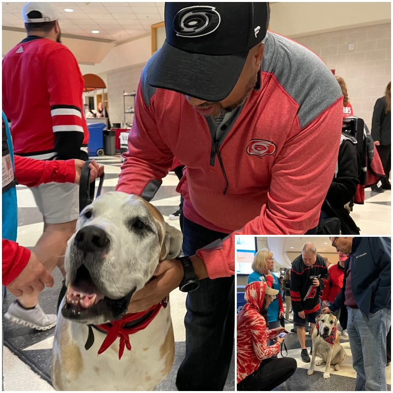 Thank you to all the Therapy Dog Teams that made the event at the PNC Hurricanes game a success! A very special thank you to Karen for all her hours of hard work in making sure everything ran smoothly here and all other places they visit. Great work everyone!