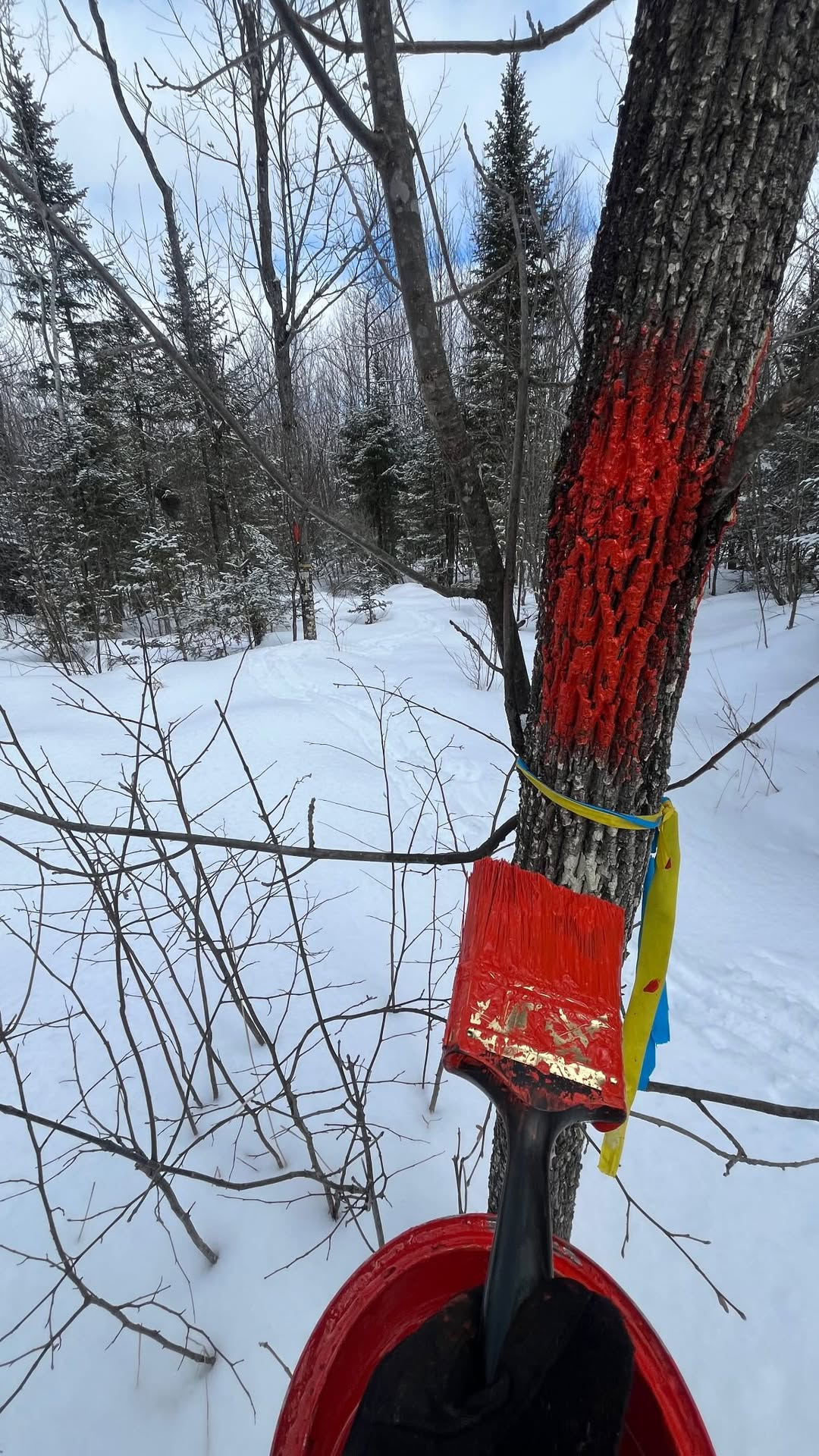 The above photograph is from Travis, our Lands Coordinator, blazing the property lines of the Rumford Community Forest. You can learn more about boundary tree blazing by reading the Spring 2025 Northern Woodland article linked below.