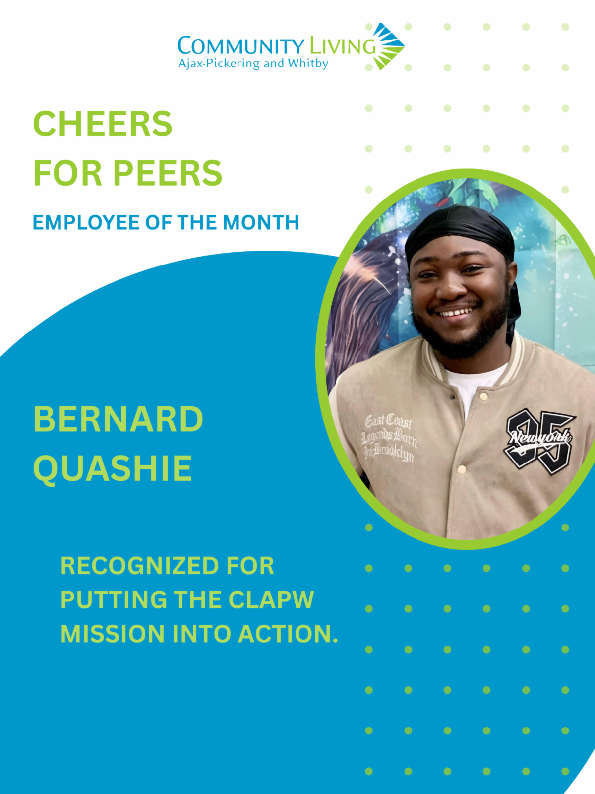At Community Living Ajax-Pickering and Whitby (CLAPW), we believe in celebrating the incredible dedication of our team. Through our Cheers for Peers initiative, we recognize staff who go above and beyond — bringing our mission, vision, and values to life each day.
