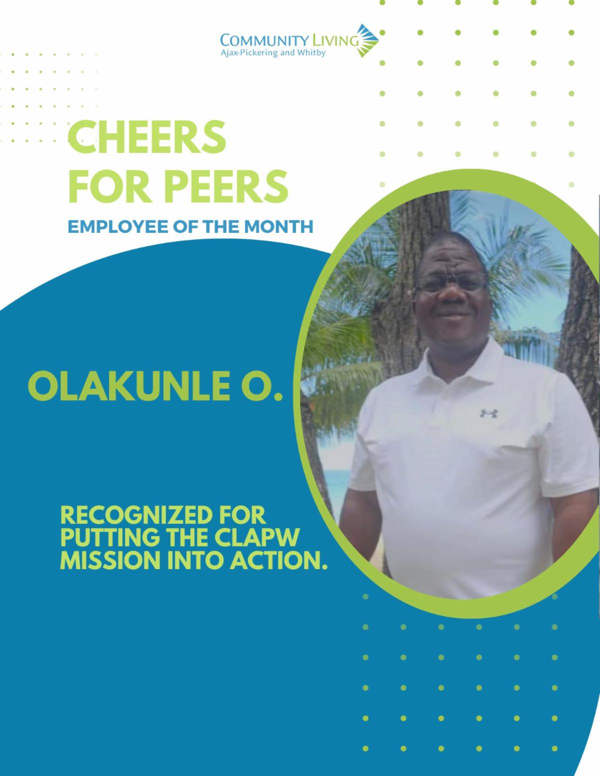 ,Congratulations, Kunle, our Employee of the Month/Cheers for Peers recipient for October, and thank you for your outstanding commitment and compassion!